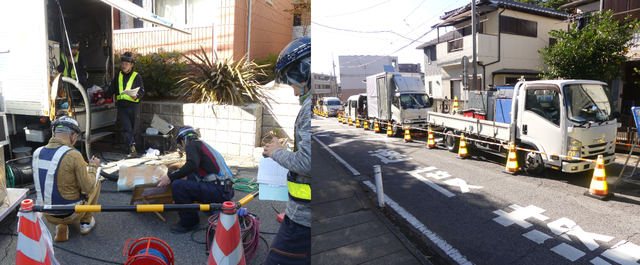 道路を掘り起こさずに、地下に張り巡らされた下水管の工事を行います。